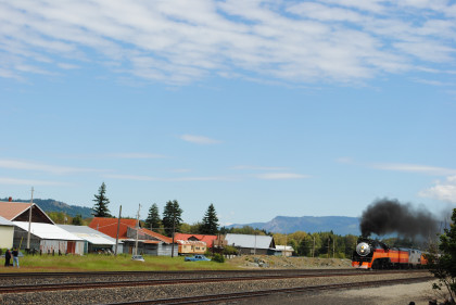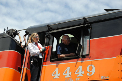 Southern Pacific 4449 engineer Doyle McCormack. From here we relocated to catch the engine coming around the train and for the photo runby.