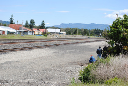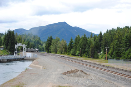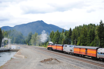 The former Milwaukee Road grade. We then joined a photo line so when the motive power cut away from the train, we would be in a position to photograph it.