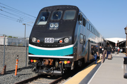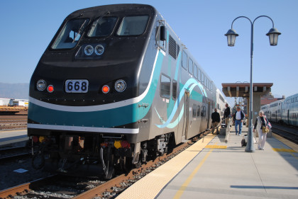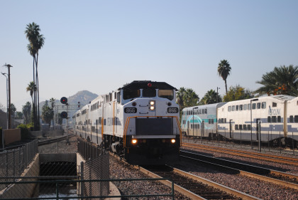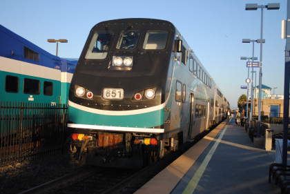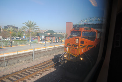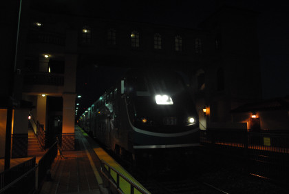The Metrolink Weekend Pass. On Friday morning, I arose early and drove to the Santa Ana station, parked and after a few Sudoku puzzles, saw the headlight coming south down the track towards me.