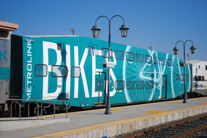 The sunny side of the Metrolink bicycle car, which had been introduced a couple of months ago. I reboarded the train for the trip to Los Angeles.