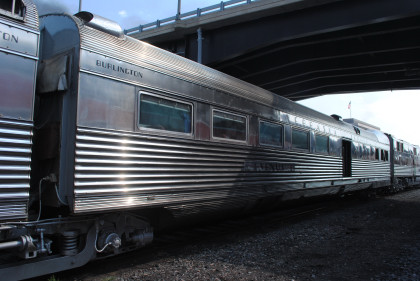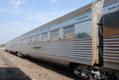 Chicago, Burlington and Quincy coach 4626 "Vesta" built by Budd Company in 1936. It is a full coach, designed as a "day coach" with comfortable seating for medium-distance transportation. The car is articulated at both ends, which means that it shares its trucks with the adjacent cars in the train and cannot be uncoupled.