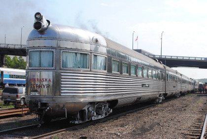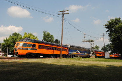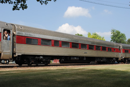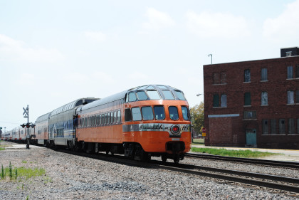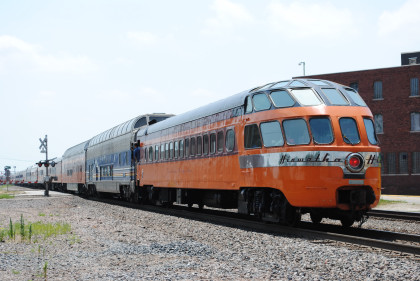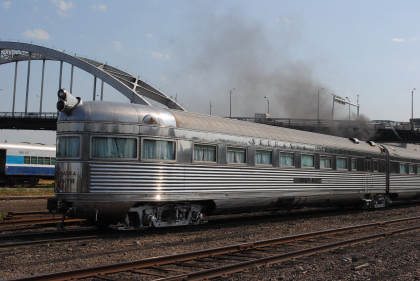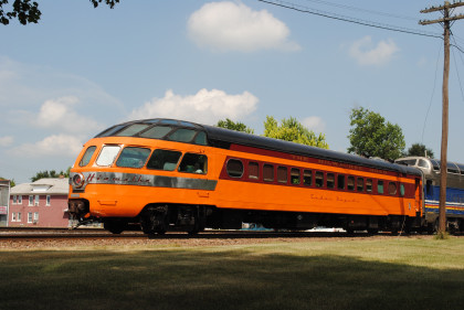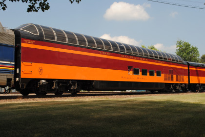 Milwaukee Road Skytop observation car 186 "Cedar Rapids" designed by Brooks Stevens and built by the railroad in 1948 for service on the Twin Cities Hiawathas. It is one of only four Skytop observation parlor lounges ever built and the only one that can still ride the rails today.
