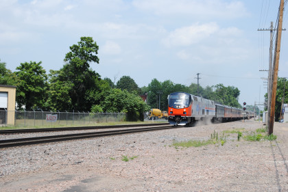 The Southwest Chief. From here we drove over to the Peoria wye and as we walked to a shady spot under a tree, I felt dizzy and the high heat finally caught up to me. I laid down under that tree and Nathan brought the water and the Gatorade mix which I made and drank it. I sat there while the train reversed off the wye.
