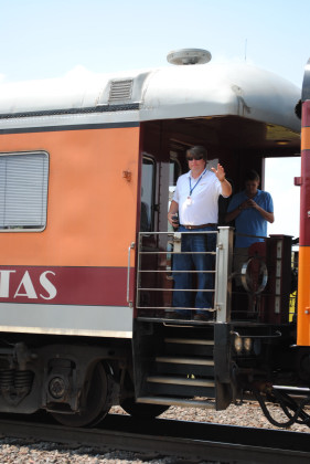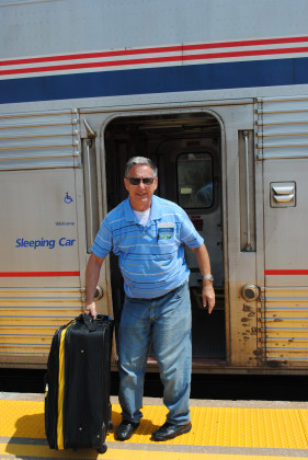 Bob Riskie exiting the train.