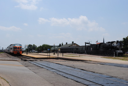 Nickel Plate Road 765 put on a great show pulling the train through Davenport on its way to Walcott. The two of us then drove south to Galesburg to pick up Bob Riskie and try to catch the Amtrak Rock Island Special.
