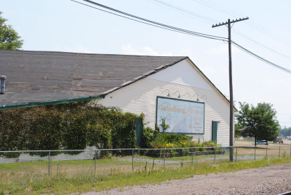 The Galesburg Railroad Days sign on this building across from the station.