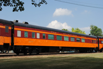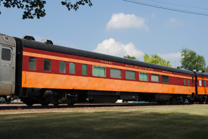 Milwaukee Road "Super Dome" 53, ex. North Carolina Department of Transportation 400301 "Mount Mitchell" 1996, exx. Union Pacific Railroad for Operation Lifesaver and excursion use 1995, exxx. Chicago and North Western 421 "Powder River" 1985, exxxx. Rail Travel Association 53 1983 (rebuilt), retired 1982 to Great Western Tours, exxxxx. VIA 2701 1978, exxxxxx. Canadian National 2701 1974, exxxxxxx. Canadian National 2401 "Athabasca", nee Milwaukee Road 53 built by Pullman Standard in 1952. PPCX 800862.