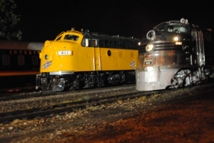 My first shot was Chicago, Burlington and Quincy E5A 9911A and Chicago and North Western F7A 411.