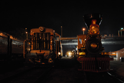 Central Pacific 4-4-0 63 "Leviathan" and Chicago, Burlington and Quincy SW7 9255.