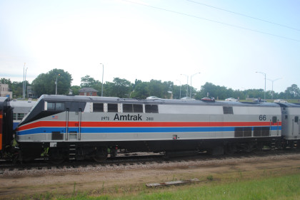 Amtrak P42 66 in Phase 2 Heritage paint scheme.