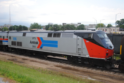 Amtrak P42 156 in Phase 1 Heritage paint scheme.