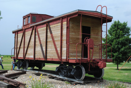 Rock Island wooden caboose 17030 built in 1913 as a boxcar, converted to a caboose in 1940 and purchased from a museum in Adair, Iowa.