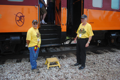 My car attendants for our trip today. I returned to my seat before walking the coach section of the train and visiting with the passengers I knew then returned to my seat at departure time.