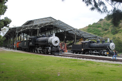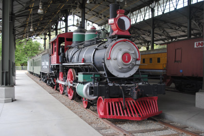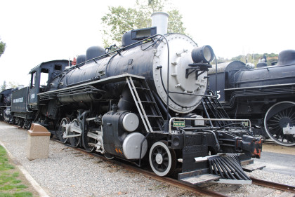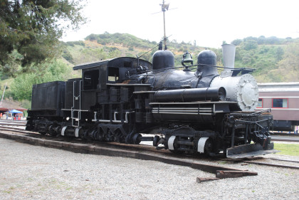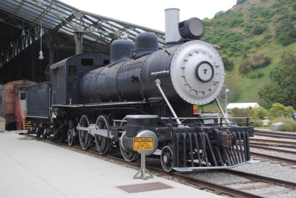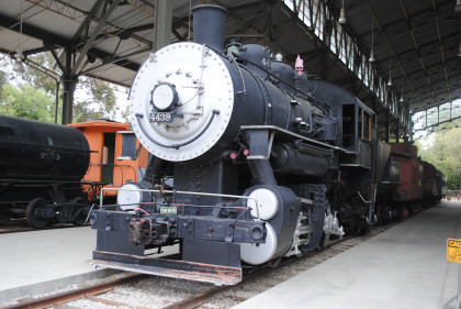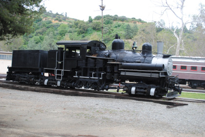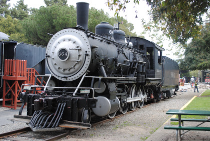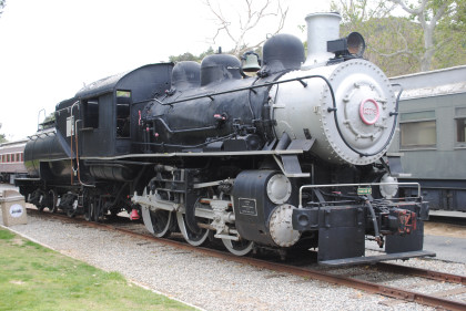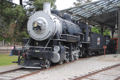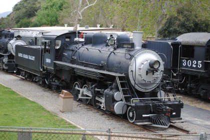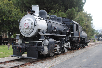 Santa Maria Valley Railroad Mikado 2-8-2 1000 built by American Lomotive Company in 1920, originally Hetch Hetchy Railroad 4. This 68-mile railroad was built by the City of San Francisco to develop the O'Shaughnessy Dam on the Tuolumne River in Hetch Hetchy Valley, Yosemite, California. In 1930, 4 was sold to the Newaukum Valley Railroad, a line owned and operated by the Carlisle Lumber Company in Washington State running between Napavine to Onalaska. There, it was re-numbered 1000. In 1944, the engine was sold to the Santa Maria Valley Railroad, a 10 1/2 mile shortline serving oil refineries in Santa Maria, California, as well as hauling produce to the Southern Pacific's mainline at Guadalupe. The Santa Maria Valley Railroad donated 1000 to the museum in 1953 as it dieselised.