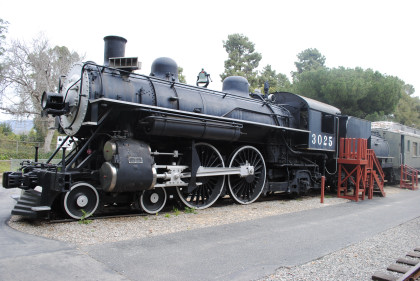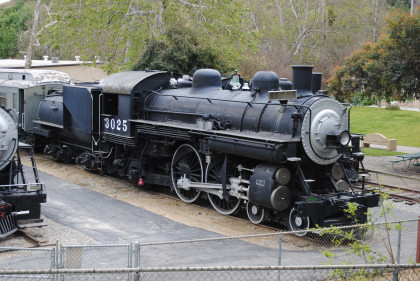 Southern Pacific Atlantic 4-4-2 3025 built by American Lomotive Company in 1904. It is the only surviving Atlantic built for the Southern Pacific and was the first standard gauge locomotive to be displayed at Travel Town.
