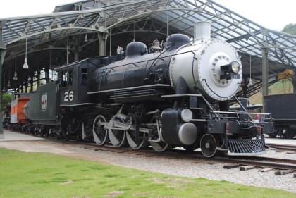 Western Pacific 2-8-0 26 built by American Locomotive Company in 1909. The C-43s served the railway through World War II and were retired in the late 1940s and early 1950s. This steam engine was donated to the museum in 1954.