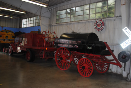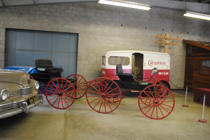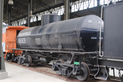 News about Travel Town spread like wildfire, and almost immediately the display was receiving new vehicles and other exhibits in rapid, one after the other sequence. By the first of December, Travel Town had on exhibit a 44-passenger street car given by the Los Angeles Transit Lines; an historic 76-year old dray, presented by Paul J. Smith, president of the republic Van and Storage Company, a 50-year-old kerosene tank wagon, donated by Standard Oil Company of California; a colorful old circus wagon, given by the Beverly Amusement Company; Caboose No 2117, a veteran "home on wheels" for nomadic trainmen, given by the Union Pacific Railroad Company; and a one-horse shay, the gift of Knott's Berry Farm.
