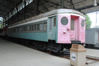 Santa Fe Motor Car 177 built by Pullnan Company in 1929. Motorcars, nicknamed "doodlebugs", combined three functions of railroading into one vehicle: motive power, passenger seating and baggage compartment. This functional consolidation efficiently served branch lines by saving the railroads the costly operation of an entire train with locomotive and half-filled cars. The baggage compartment of the M.177 served not only as baggage and freight compartment, but also as a Railway Post Office and as a refrigerator car (by sitting perishables on metal plates with ice blocks). Doodlebugs, like M.177, were the life blood along the smaller veins of the Santa Fe system serving small, rural communities in Oklahoma, Kansas and Texas from the Depression through the Korean War.