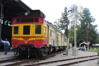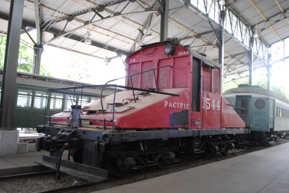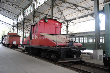 Pacific Electric steeplecab 1544 "Electrica" was built by North Shore Railroad in 1902 at their Tiburon shops in Sausalito, California. The Pacific Electric used 1544 as a work locomotive and switcher at various locations in the Los Angeles area. It last worked at PE's Torrance repair shops until it was retired in 1952 and donated to the museum two years later.