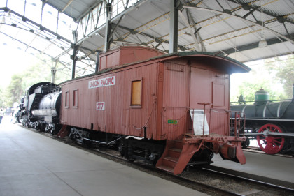 Union Pacific wooden caboose 2117 built by the railroad in 1881.
