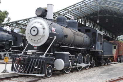 Sharp & Fellows Railroad Contractor Prairie 2-6-2 7 built by American Locomotive Company in 1902. It worked on building the Santa Fe Railway system through Kansas, Texas, Oklahoma, New Mexico, Arizona and California. During World War I, 7 worked at Camp Kearney in San Diego and during World War II, it worked at various ordnance depots, including Fort Wingate, New Mexico, and the Navajo Ordnance Plant at Flagstaff, Arizona.
