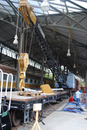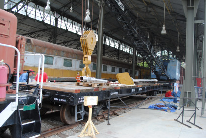 With the donation assured, Atkins' next problem was to determine how to move the gallant, oil-burning chugger from Glendale to Travel Town. The Belyea Truck Company agreed to tackle the ticklish task and, on October 10, the unprecedented hauling job was completed as a free public service. The Belyea Truck Company has since performed several other similar assignments in aiding the development of Travel Town.