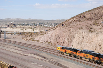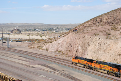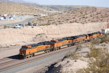 BNSF 7211 East departed Barstow. I walked down the hill to be clear of that freight train that stopped in front of us.