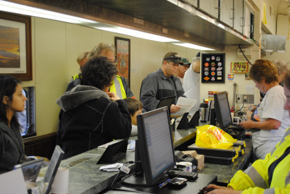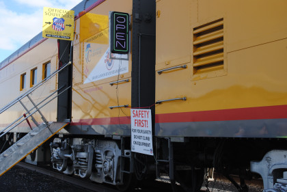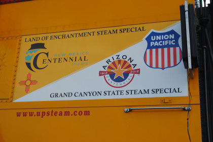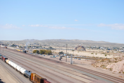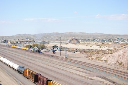 Union Pacific 844 left Barstow for Yermo. I walked back to the car and we drove to Barstow, minus Bob Riskie, who was taking the Thruway Bus to Bakersfield, San Joaquin to Martinez and the Coast Starlight back to Chemult and the bus home to Bend. We ended up at the Yermo grade crossing and waited before walking down to where the steam engine was being serviced.