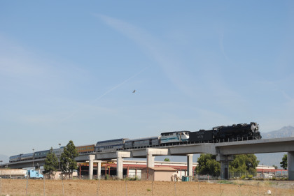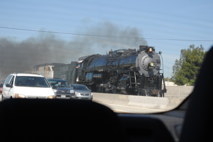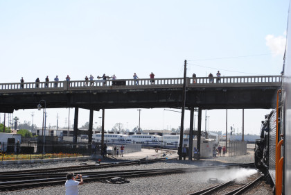 Santa Fe 3751 climbed up and over the San Bernardino flyover before I sat down and listened to the sounds of the steam engine and whistle.
