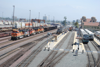 The Short Way tracks took off to the south and are used by the Inland Empire Metrolink trains.