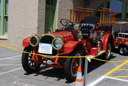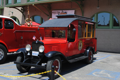 Amtique fire engines on display.