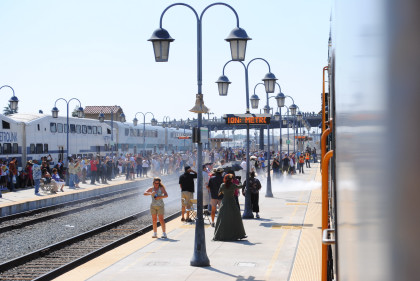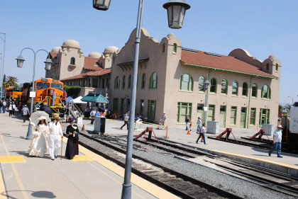 Two more views of the San Bernardino Metrolink station. I walked back down to the steam engine.