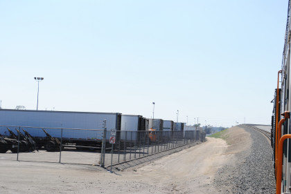 The view from under the old bridge into the former Southern Pacific piggyback yard.