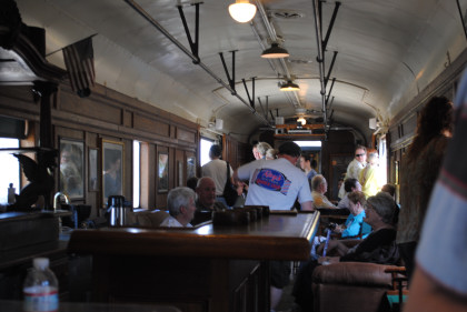 Santa Fe 3751 West to LAUPT 4/17/2011I boarding the "Pony Express" and sat down since my rib was really hurting. I would only stand up for a few pictures, relaxing and being able to hear the sounds of Santa Fe 3751 on the trip.
