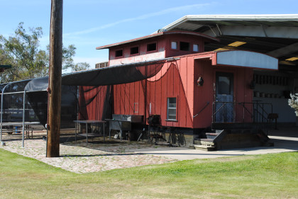 Santa Fe baggage car Railway Express Car 1772 built by the Pullman Company in 1910. It was purchased from the Electric Car Museum in Rio Vista and transported by house movers to The Double T in 2003..