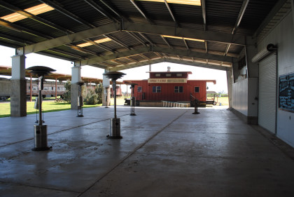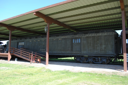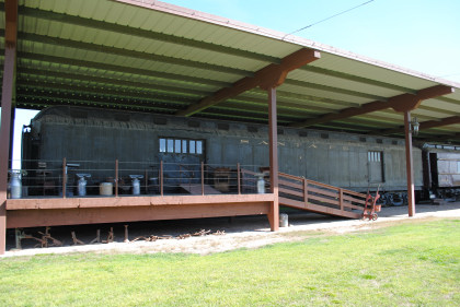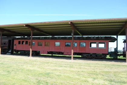 The History Train sits under cover to keep it out of the blazing sun of the San Joaquin Valley.