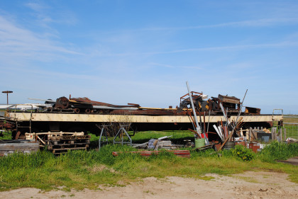State Belt Railroad idler flat car 02 rebuilt from turn-of-the-century Union Oil tank car 98 and became UOCX 917.