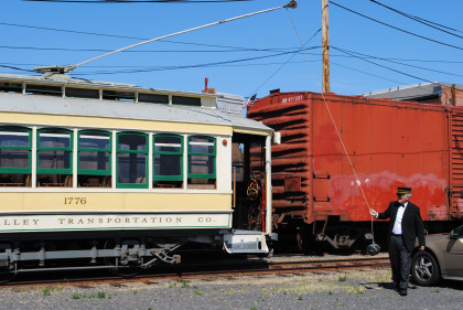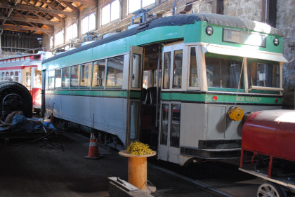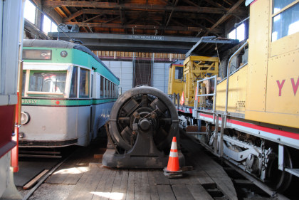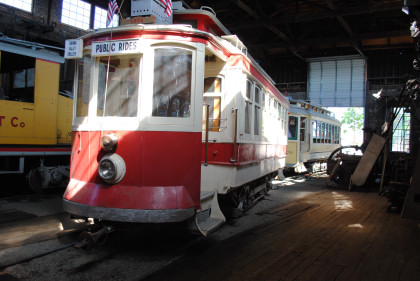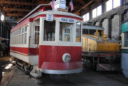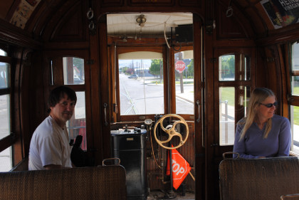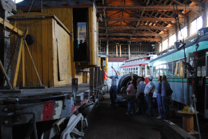 Trolley Car 1776 at the west end of their present operations. I enjoyed the ride back talking with Bart and Sarah on the way. Once there, a car barn tour was given for us.