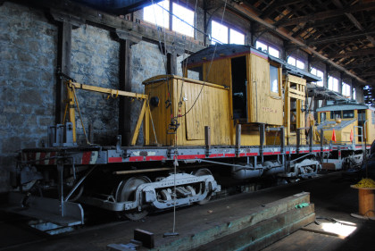 The YVT built a large stone and timber carbarn/shop facility in 1910. In 1911 a concrete and masonry powerhouse substation was constructed to provide the necessary DC electricity to operate the trolleys. Both buildings are still in use today. The overhead wire catenary is also original.