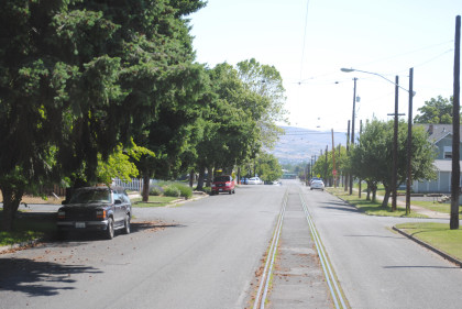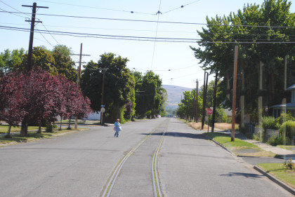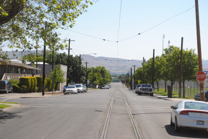 Now the trolley pole was reversed for our trip down West Pine Street. The Selah Gap run has not been operated due to wire thieves who stole the copper wire to sell. The group hopes to restore this longer operation but until then, the trips run west down West Pine Street.