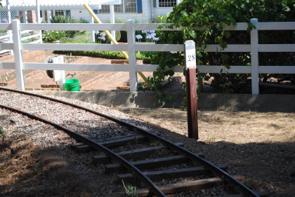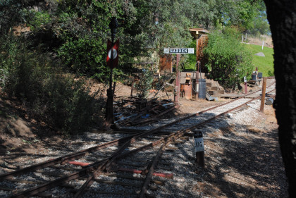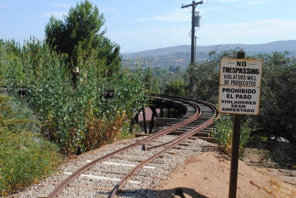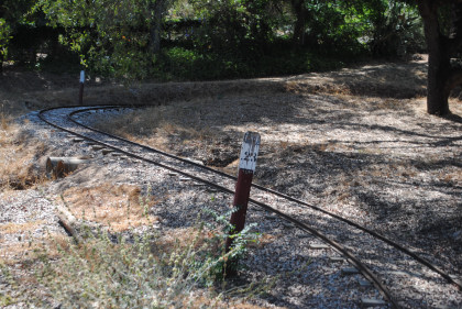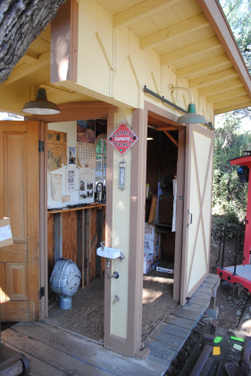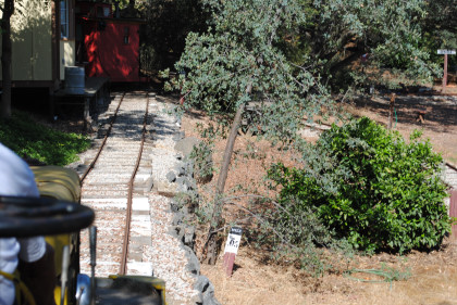 One last look at the 20 inch track at the Decanso, Alpine and Pacific Railway. Roy showed us some material and then we swapped a few stories, informing AC Adam and I about a railroad up in Julian that would be running later today and to give them a call. We thanked Roy for allowing us to visit his unique railroad here in Alpine then left for Poway and I made a telephone call to get us on the 1:00 PM train at Julian.