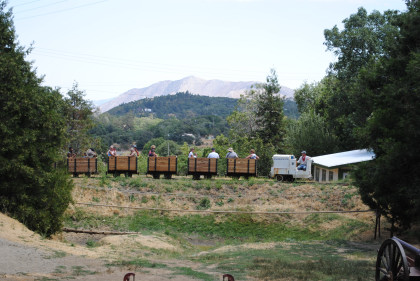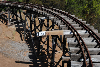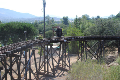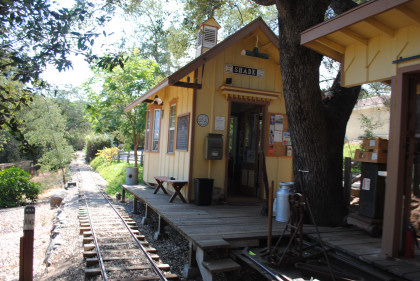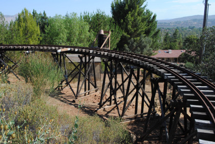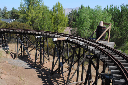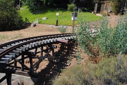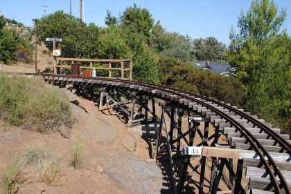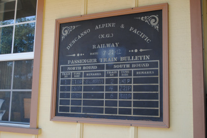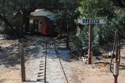 Descanso, Alpine & Pacific Railway 7/21/2012This is a two foot narrow gauge heritage railroad owned by Roy Athey, who began building the train setup on part of his 2.5 acres of land with friends Casey Derengowski and Jerry Petriozzi after he retired from the San Diego County Probation Department in 1988. A model train enthusiast and train historian, he opened Descanso, Alpine & Pacific Railway to the public in May 1990. The railway consists of a 1935 Brookville locomotive and riding car, five stations, a blacksmith's quarters and a 100-foot-long train trestle that gives riders scenic views of the Cuyamaca and Palomar mountains.