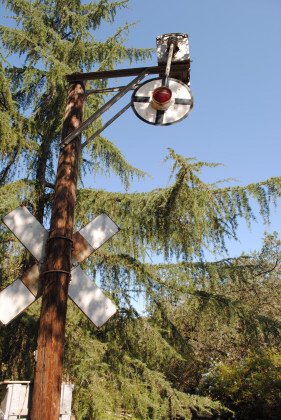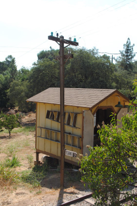 One of the working telegraph poles. Roy then reversed us down to his mainline and aligned the switch so we could continue our trip on his railroad.