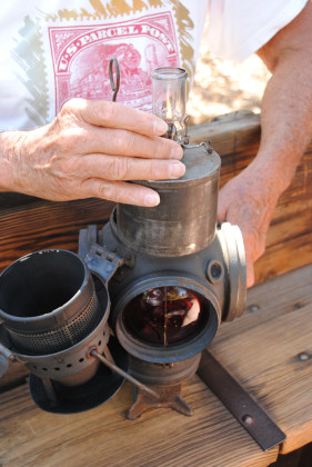 Roy came down the hill with our train for this morning's trip then showed us a few things.