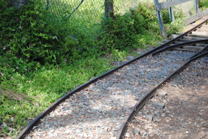 Roy showed us the rail used on his railroad and then told us from where he acquired them. We would now start our trip by heading up the hill to the driveway.