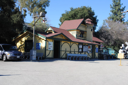 The Arcadia Santa Fe station was built in 1887 is at the Los Angeles County Fairgrounds.