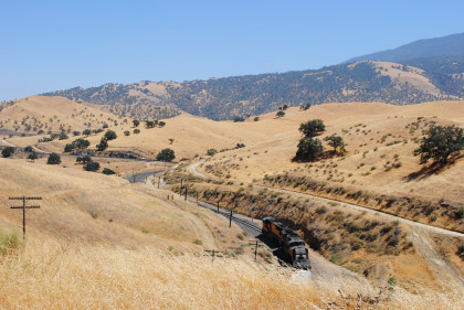 A Union Pacific light engine move. We relocated north to Lerdo Highway and set up then my phone rang with Winston informing me the train was in Bakersfield with a high green at Kern Jct. Talk about wrong information. We drove back to Bakersfield, hitting every red light coming into town but Carl and I kept our cool knowing that we would catch the train somewhere. He was not at Bakersfield nor Edison and there was no sign of him at Sandcut or Bena.