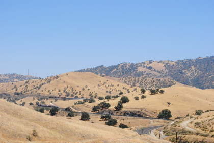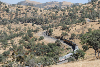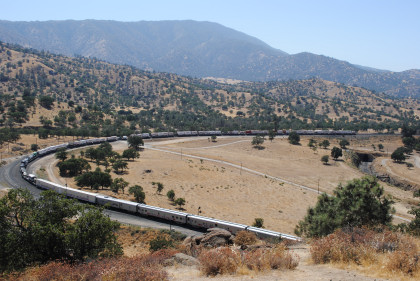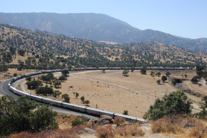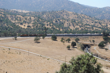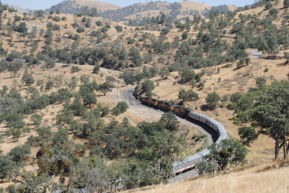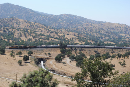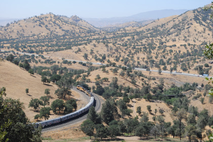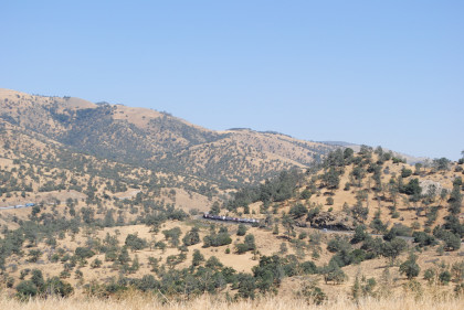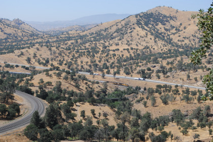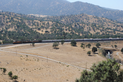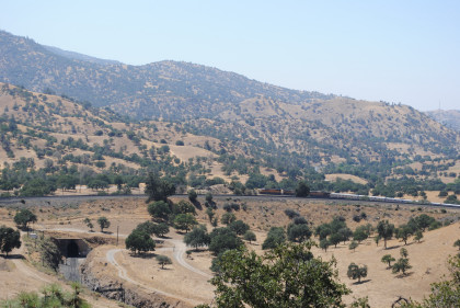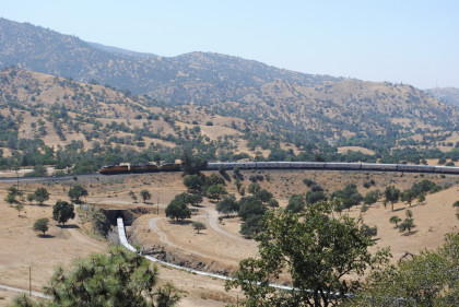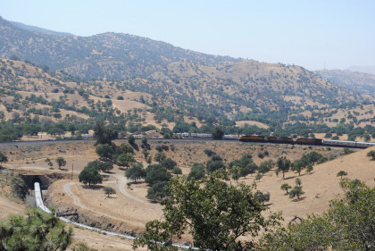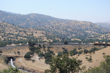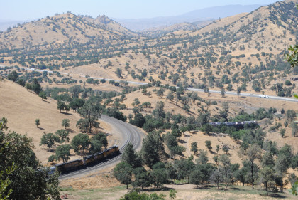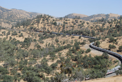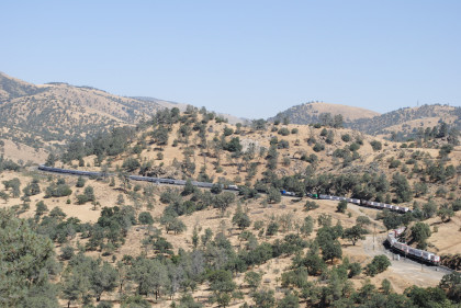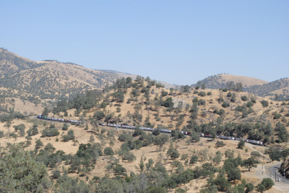Carl and I were both very happy with what we had just photographed. From here we drove to the hill above the Tehachapi Loop, hiked the trail and set up. There we met several other nice railfan and Carl really liked this location as it was his first time taking pictures here. We spotted the train coming through Woodford then we knew the fun would start again right below our vantage point.