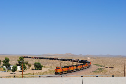 The Blue Unit Circus Train left Mojave with BNSF 5271 West waiting for him to clear the junction. We returned to the van and drove along Sierra Highway finding a spot for our next pictures.