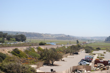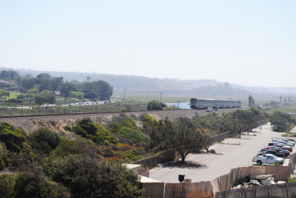 Pacific Surfliner 566 bound for San Diego. We relocated to the State Beach south of Del Mar and I paid for parking then we walked up to the bank of the old US highway 101 bridge and would wait here.